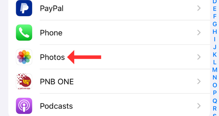 Bunu yapmak için iPhone’unuzda Ayarlar uygulamasını açın ve en alttaki “Uygulamalar ”ı seçin. Ardından, aşağıdaki ekranda Fotoğraflar uygulamasını bulun ve seçin.