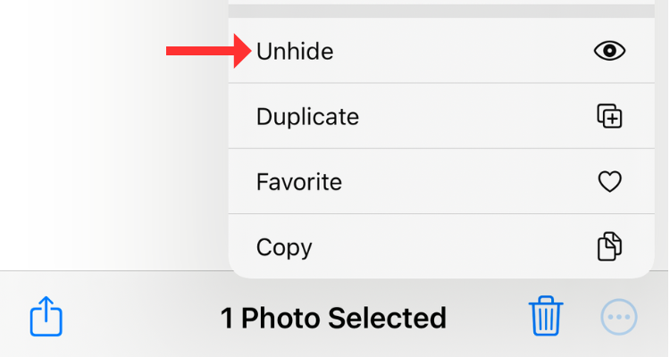 - Gizli fotoğraflar albümüne girdiğinizde, “…” üç nokta menüsünü kullanarak gerekli fotoğraf ve videoların gizliliğini kaldırabilirsiniz.