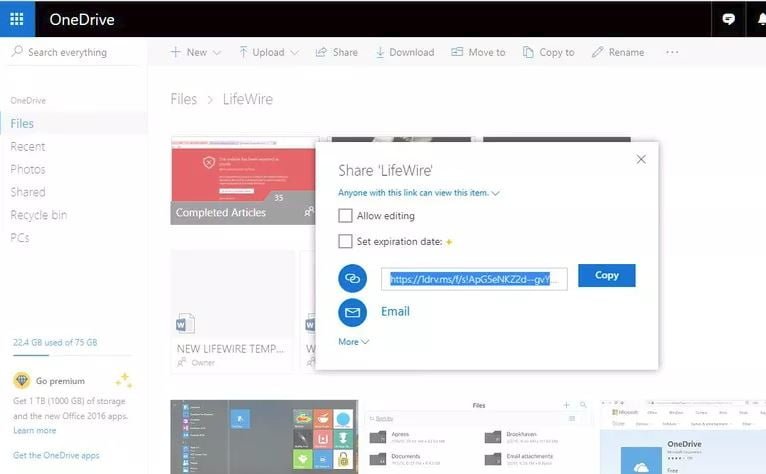 - Dosyaları bir web bağlantısını kullanarak başkalarıyla paylaşın, bir e-postaya veya metne yapıştırabilir ve arzu ederseniz düzenlemelerin kullanımına izin verebilirsiniz.