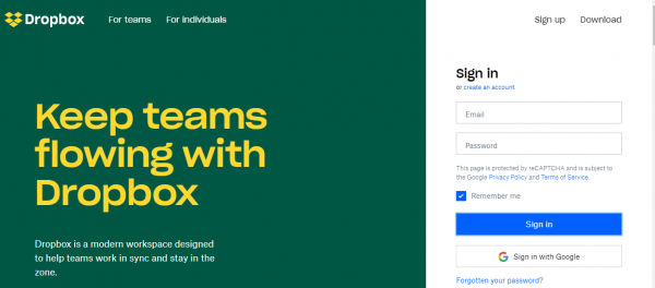 - Dropbox.com web sitesini ziyaret edin ve ikincil Dropbox hesabı kimlik bilgilerinizle oturum açın.
