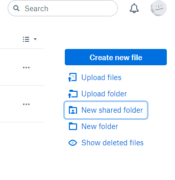 Web tarayıcısını başlatın ve Dropbox’ın resmi web sitesini ziyaret edin. İkincil Dropbox hesabı kimlik bilgilerinizle giriş yapın. Yeni Paylaşılan klasörüne tıklayın.