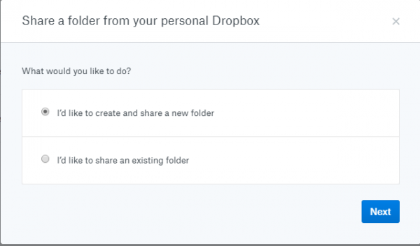 Verilen iki seçenek arasında seçim yaparak radyo düğmesine basın. “Yeni bir klasör oluşturmak ve paylaşmak istiyorum” seçeneğini veya “Mevcut bir klasörü paylaşmak istiyorum” seçeneğini belirtebilirsiniz.