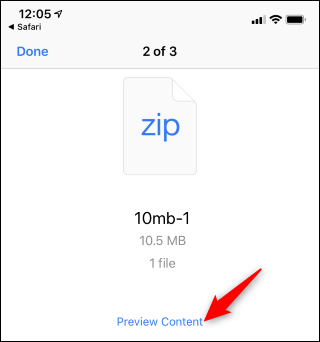 Zip dosyasının içeriğini görmek için “İçeriği Önizle” ye dokunun.