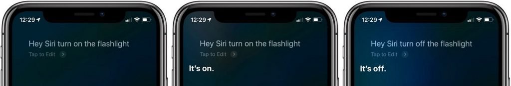 Siri, açacaktır ve “Hey Siri, el fenerini kapat” gibi bir komutla kapatılmasını isteyebilirsiniz.