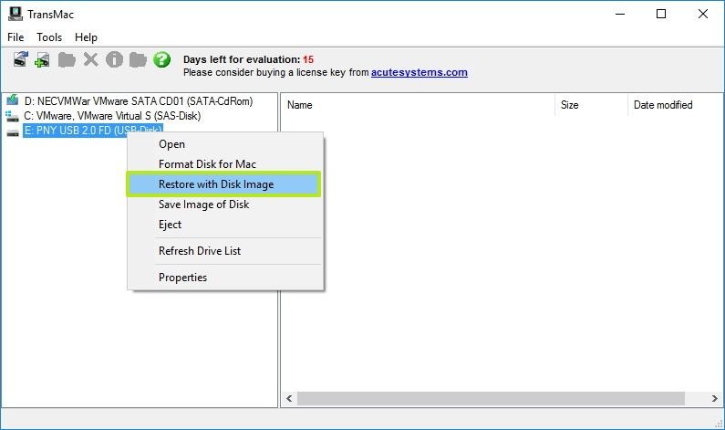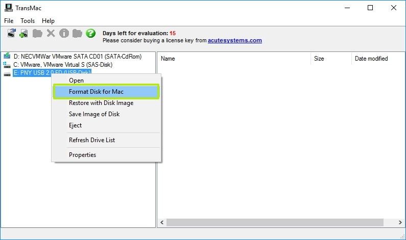 1- TransMac‘i indirin ve yükleyin. Bu ücretli bir yazılımdır, ancak 15 günlük bir deneme süresi bulunuyor, bu da işlemimiz için yeterli durumda.