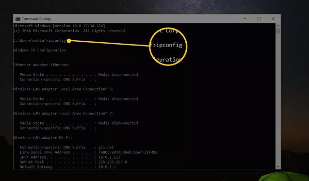 Windows’da, cihazınızın IP adresini ipconfig komutunu kullanarak Komut İstemi aracılığıyla bulabilirsiniz.