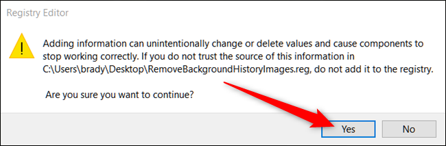 Kendi Kayıt Defterinize bir REG dosyası uygulamak istiyorsanız, tek yapmanız gereken dosyayı çift tıklamaktır. Windows’ta, kayıt defterindeki dosyayı temel alarak değiştirmesi için izin vermeniz istenir.