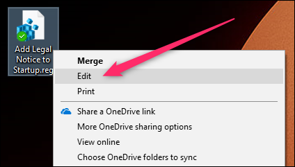 Herhangi bir REG dosyasını sağ tıklatın ve sonra dosyayı varsayılan metin düzenleyicinizde açmak için “Düzenle” komutunu tıklatın.
