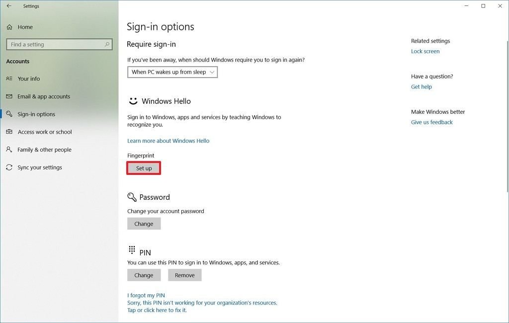 - Windows Hello Parmak İzi altından Kurulum’u seçin.