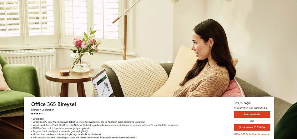 Abonelik hizmeti farklı planlar ile geliyor. Uygulamaları ve hizmetleri kullanan tek kişi sizseniz, 1TB OneDrive depolama alanına ve Skype dakikalarına ek olarak, yazılım paketine erişmenizi sağlayan “Office 365 BireyselKişisel” planını yıllık 360 TL karşılığında satın alabilirsiniz.