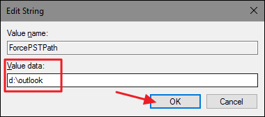 Özellikler penceresini açmak için yeni ForcePSTPath (veya ForceOSTPath) değerini çift tıklatın ve Outlook’un yeni veri dosyalarını “Değer verisi” kutusuna depolamasını istediğiniz konumu yazın. İşiniz bittiğinde Tamam’ı tıklayın.