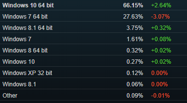 Son zamanlarda yapılan bir Steam Donanımı anketine göre, Windows XP kullanıcıları, Steam kullanıcılarının %0.12’sini oluşturuyor.