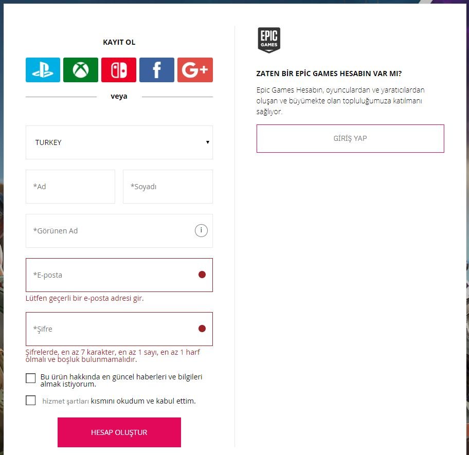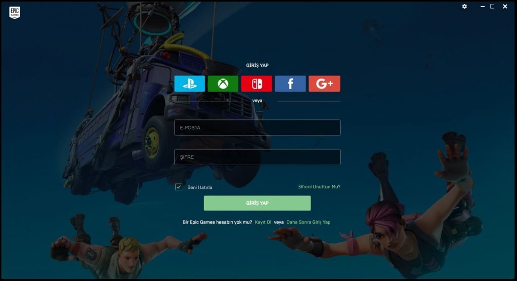 10- İndirme bittiğinde aşağıdaki gibi giriş ekranı gelecektir. Giriş yaparak Fortnite oyununu oynamaya başlayabilirsiniz.