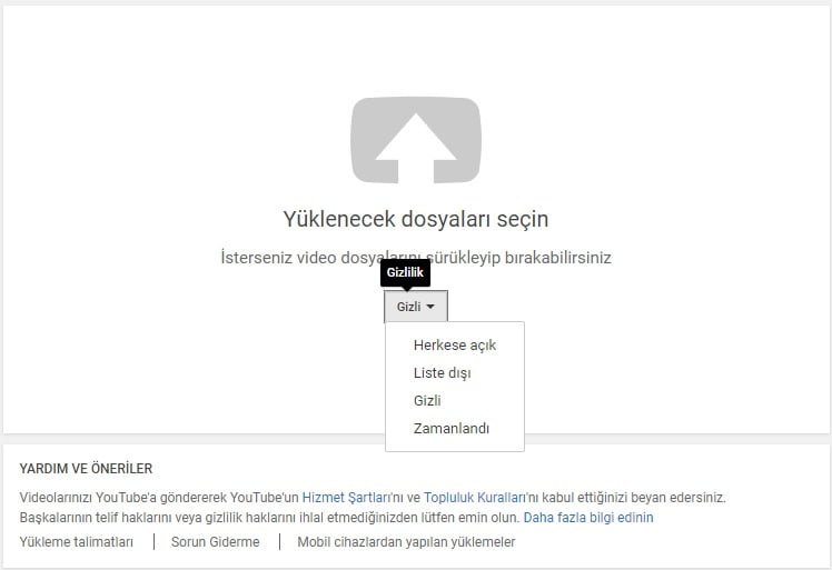 - Gizli: Videonuz yalnızca sizin tarafınızdan görülebilir – hesabınızda oturum açmış olduğunuz sürece.