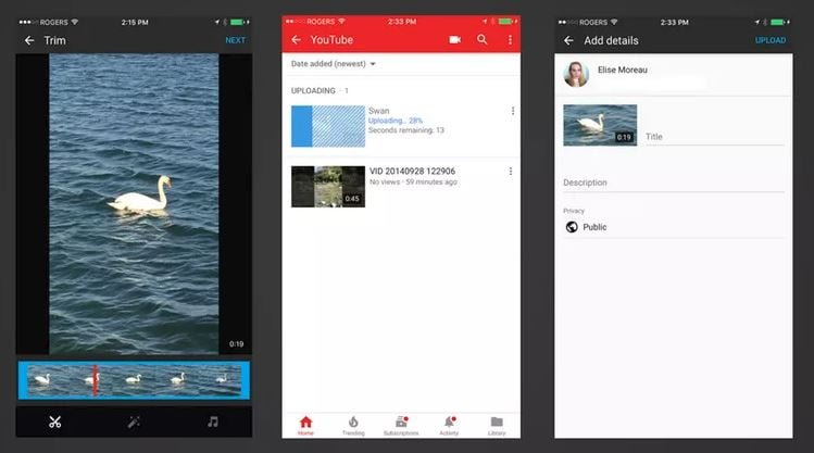Mobil uygulama aracılığıyla videoları YouTube’a yüklemek, web’de yapmaktan biraz farklıdır. Instagram gibi diğer popüler video paylaşım uygulamalarına benzer şekilde, ilk önce oynayabileceğiniz birkaç hızlı düzenleme aracı ve ardından video ayrıntılarınızı doldurabileceğiniz bir sekme karşınıza gelmektedir.