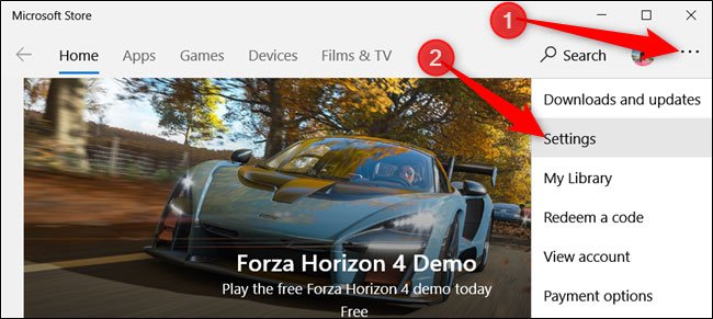 Mağaza uygulamasında sağ üstte, Daha Fazla düğmesini (üç nokta) ve ardından “Ayarlar” tıklayın.