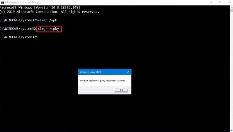 3- Geçerli ürün anahtarını kaldırmak için aşağıdaki komutu yazın ve Enter tuşuna basın: