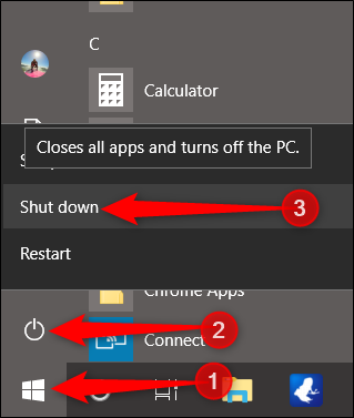 Başlat menüsünde, önce Güç Düğmesine tıklarsınız. Ardından, “Kapat” komutuna tıklarken Shift tuşunu basılı tutun.