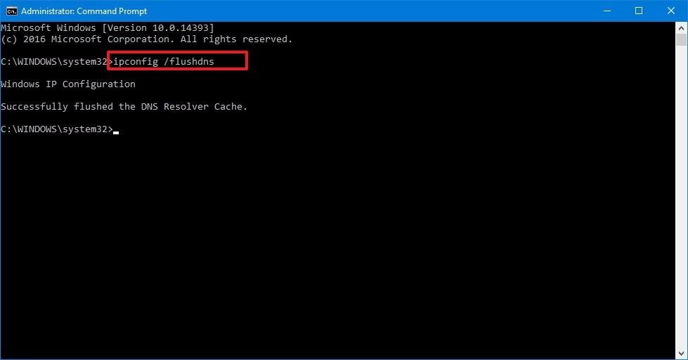 - DNS bilgilerini sıfırlamak için aşağıdaki komutu yazın ve Enter tuşuna basın:
