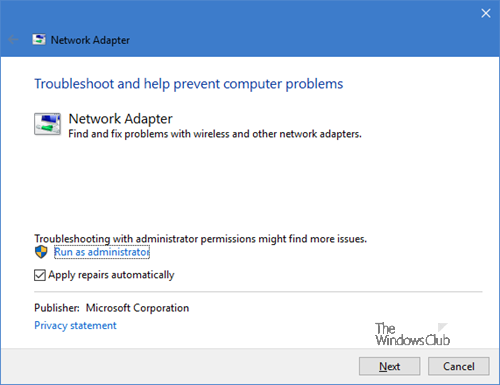 msdt.exe /id NetworkDiagnosticsNetworkAdapter