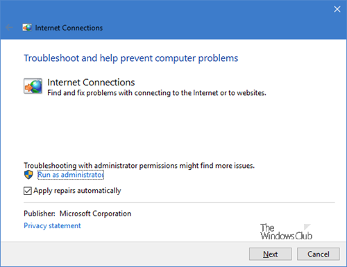 İnternet’e bağlanamadığınızı veya bir web sitesi açarken sorunla karşılaştığınızı fark ederseniz İnternet Bağlantıları Sorun Gidericisi’ni çalıştırın. Bu sorun giderici, sorunları otomatik olarak düzeltir. Çalıştır kutusunu açın ve aşağıdaki komutu yürütün:
