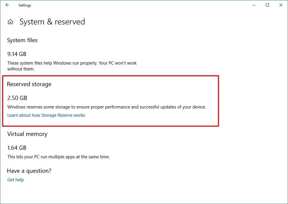 Ayrılmış Depolama alanı genellikle güncellemeler, geçici dosyalar, sistem önbelleği ve uygulamalar için yaklaşık 7 GB saklama alanı ayırır. Yeni bir güncelleme olduğunda Windows 10, güncellemelerin başarılı bir şekilde kurulmasını sağlayan otomatik olarak ayrılmış depolama alanındaki dosyaları siler.