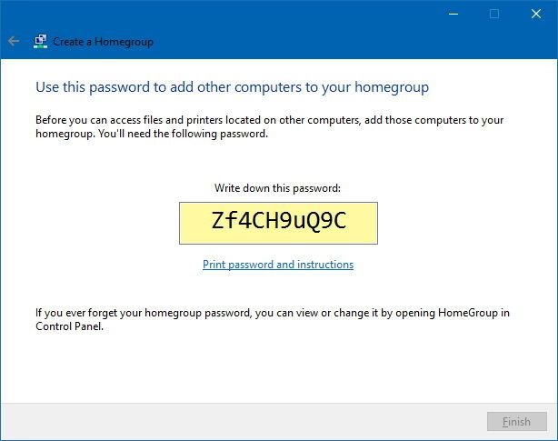 8- Diğer bilgisayarların katılması için Ev Grubu şifresini not ettiğinizden emin olun ve işlemi tamamlamak için Bitir’i tıklayın.