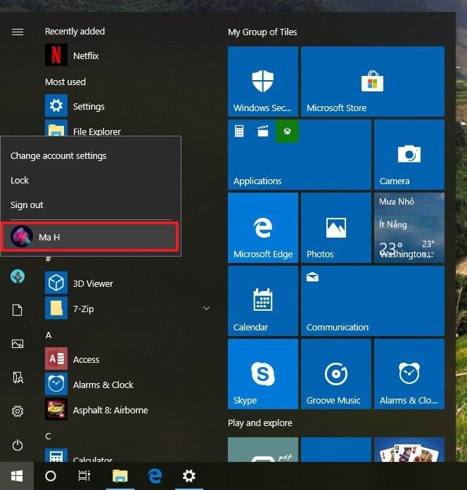 Başlat Menüsünü Kullanarak Hesaplar Arasında Geçiş Yapmak
