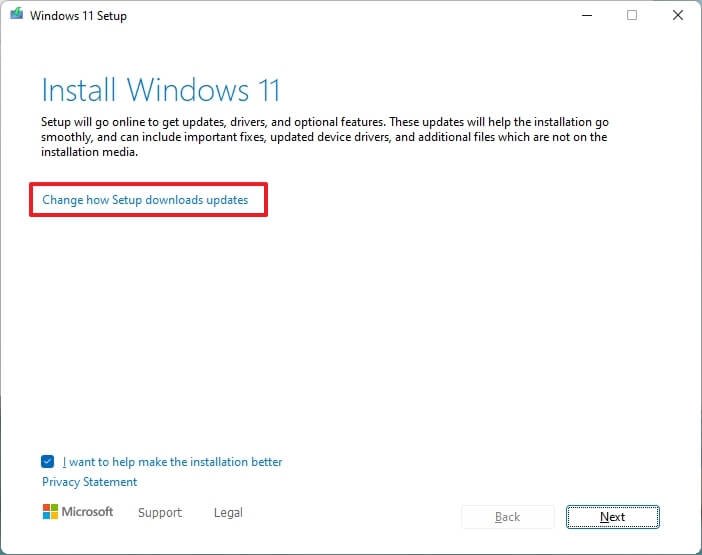 - (İsteğe bağlı) “Windows Kurulumu’nun güncelleştirmeleri indirme şeklini değiştir” seçeneğine tıklayın.