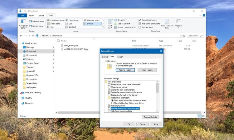 - Bilinen dosya türleri için uzantıları gizle seçeneğini temizleyin.