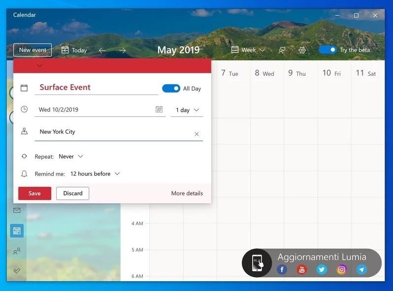 Tasarımın kendisine gelince, Aggiornamenti Lumia, yeni uygulamanın arkaplan resmi olarak yeni bir manzara temasının varsayılan olacağını söylüyor. Menü bölümüne yeni Fuent Design elemanları da ekleniyor.