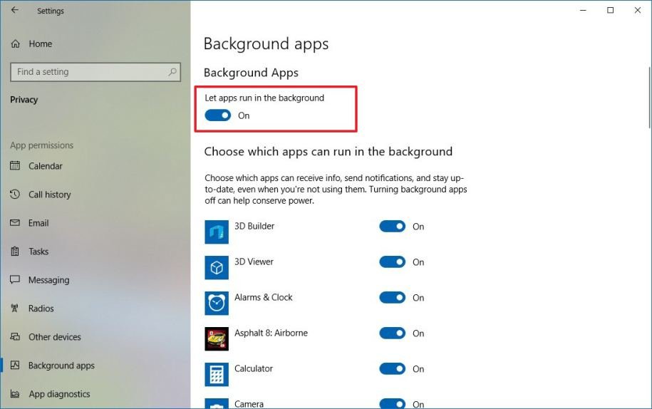 - Uygulamaların arka planda çalışmasına izin ver seçeneğini aktifleştirin.