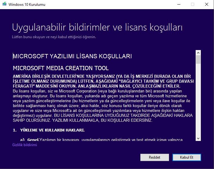 1- Media Creation Tool’u Microsoft‘tan indirin. (Download tool now seçeneğini kullanın.)