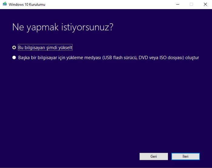 4- Bu bilgisayarı şimdi yükselt seçeneğini seçin.