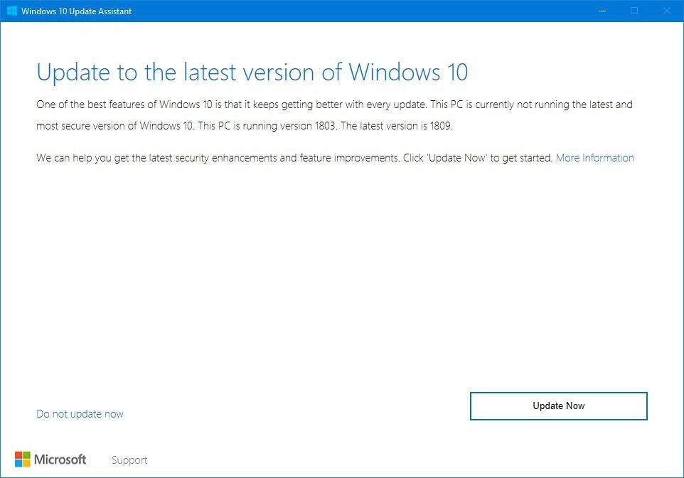 Otomatik olarak 1809 sürümünün size sunulmasını bekleyemiyorsanız, Microsoft indirme sayfasına gidebilir ve “Hemen Güncelleştirin” düğmesini tıklayarak Windows 10 Güncelleme Yardımcısı indir işlemini başlatabilirsiniz.