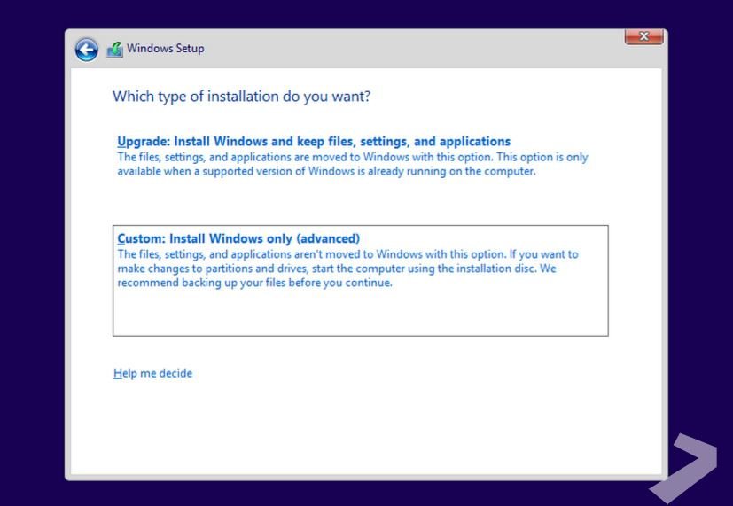 8- “Varsayılan: Windows’u sadece yükle (gelişmiş)” seçeneğini seçin. Bu, Windows 10’u bilgisayarınıza temiz bir şekilde yüklemenizi sağlar.
