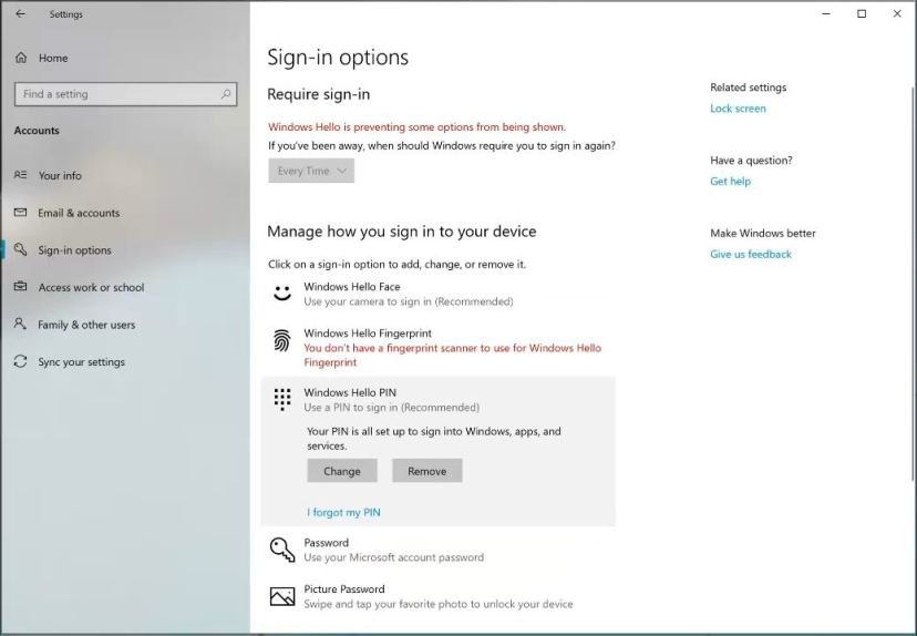 1903 sürümünde Windows 10, kullanıcıların Windows Hello Face, Windows Hello Fingerprint ve Picture Password dahil olmak üzere bir kimlik doğrulama yöntemi ayarlamasını kolaylaştırmak için Oturum Açma seçenekleri ayarları sayfasını güncelleştirmektedir.