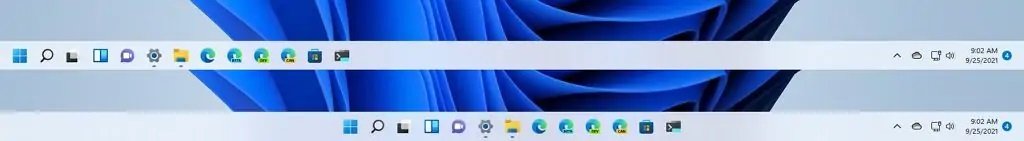 Benzer görünebilir, ancak Windows 11 ayrıca ekranın ortasına hizalanmış yeni bir Görev Çubuğu’da getiriyor. Yeni çubuk, Arama, Görev Görünümü, Widget’lar ve Sohbet dahil olmak üzere birçok yeni ve yeniden tasarlanmış özelliğe erişmek için yeni bir Başlat düğmesi ve düğmelere sahip durumda.