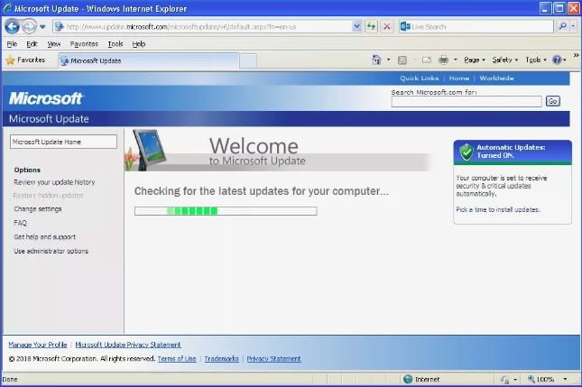 Yüklenen güncellemeleri kontrol etmek ve yüklemek, Windows Update web sitesinde ilgili bağlantılar ve düğmeler tıklamak kadar kolaydır.