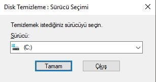 Adım 2 – Daha sonra “Disk Temizleme: Sürücü seçimi” yazan bir pencere gelecektir. Geçici dosyaları silmek istediğiniz sürücüyü seçin. Genellikle geçici dosyalar, sistem performansını etkileyen C’ye kaydedilir.