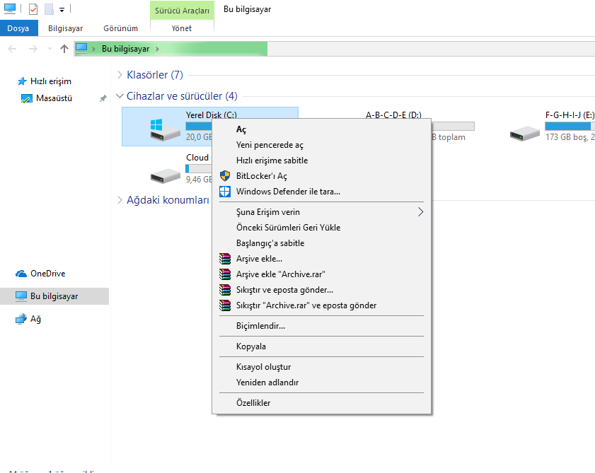 Adım 1 – Bilgisayarım’a gidin ve C sürücüsünü sağ tıklayın. Ardından, “Özellikler” i tıklayın.
