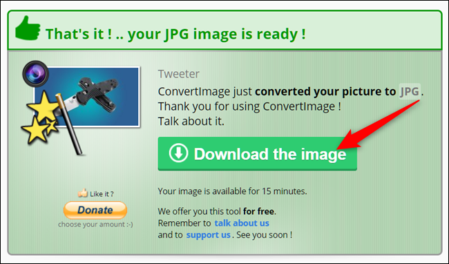 Bir sonraki sayfada, görüntünüz dönüştürüldükten sonra, “Resmi İndir” e tıklayın ve JPG’niz tarayıcınızın indirme klasörüne kaydedilir.