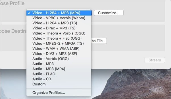 Bu, izlediğinizi otomatik olarak dönüştürmez. Bu nedenle, dosyayı tekrar pencereye sürüklemeniz gerekir. Daha sonra, kaydetmek için kullanmak istediğiniz dosya formatını seçebilirsiniz; VLC çoğu formatı destekler, ancak MP4 varsayılandır.
