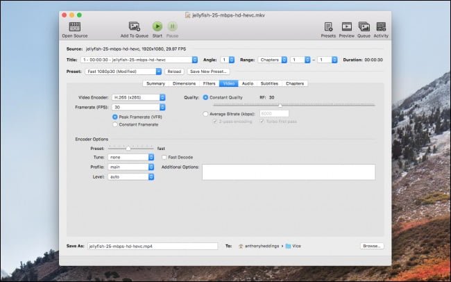 HandBrake biraz daha akıcı, ancak arayüzü biraz kafa karıştırıcı olabilir. Çok fazla seçenek ve düğme ile, hangisinin ne yaptığını anlamak biraz zor, ancak bilmeniz gereken temel değerler ön ayarlardır.