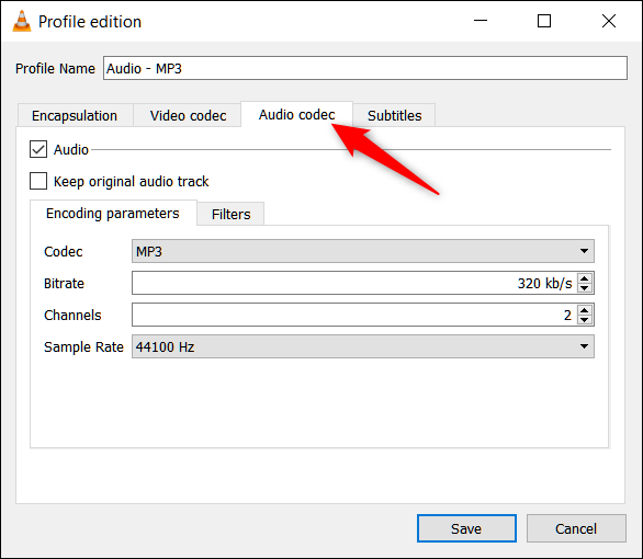 Bu, tinker yapabileceğiniz bazı daha gelişmiş seçeneklerle başka bir pencere açar. Özellikle “Audio Codec” sekmesi, bit hızı, kanallar ve örnekleme oranı gibi şeyleri değiştirmek için kullanışlıdır.